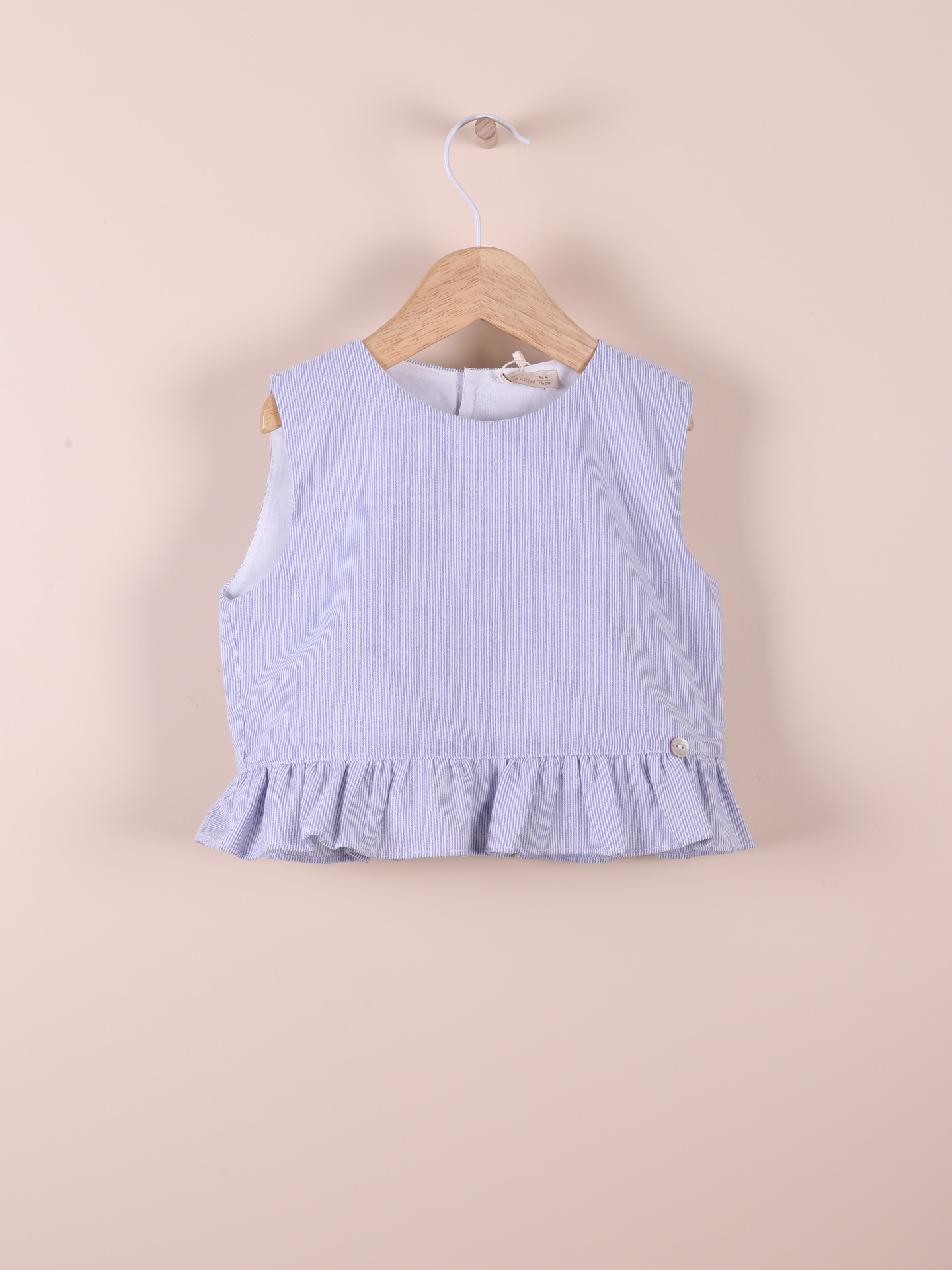 Blusa às riscas ideal para meninas, até aos 6 anos. A blusa MY FAVOURITE GIRL produzida é produzida numa mistura suave de algodão reciclado e poliéster reciclado, com riscas em azul marinho, aperta nas costas com botões madrepérola.