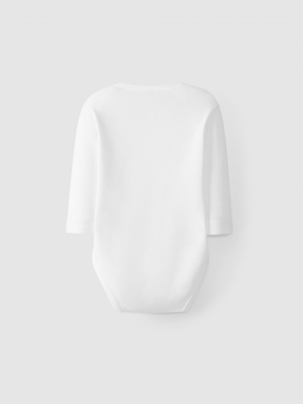 Body americano em malha antibacteriana de algodão cardado manga comprida. Aperta com molas no entrepernas.