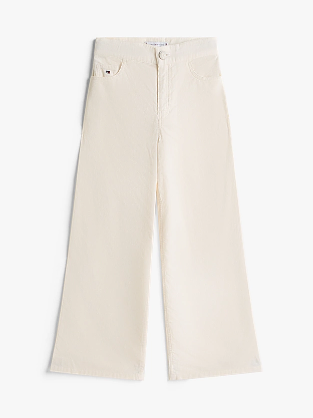 Estas calças de veludo cotelê de algodão puro de cintura alta criam um visual descontraído com seu formato de perna larga e toques sutis da marca bordada.