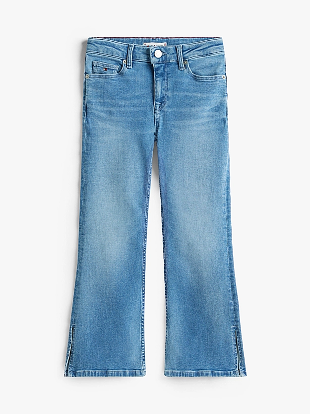 Estas calças de ganga são confeccionadas em denim de algodão com elastano e apresentam fendas laterais nas bainhas largas, criando um look descontraído com inspiração retro.