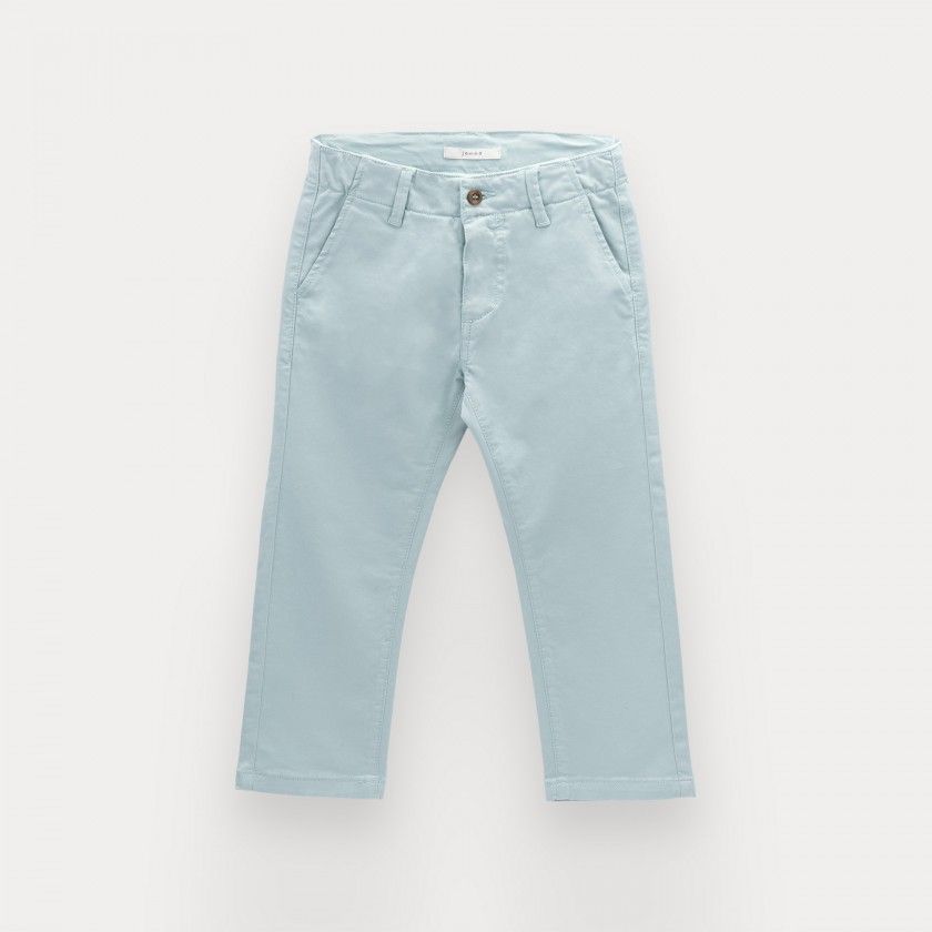As calças James para menino são em sarja de algodão, modelo chino com cintura ajustável com elástico e botões no interior, braguilha com fecho e bolsos.