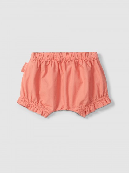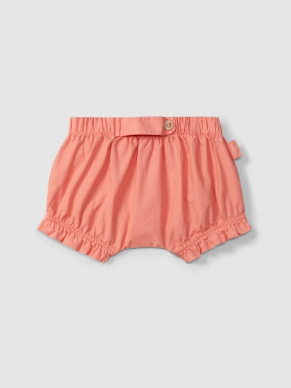 Calções pull-up em sarja lisa 100% algodão com presilha decorativa na cintura. Elasticidade nas pernas para maior conforto.
