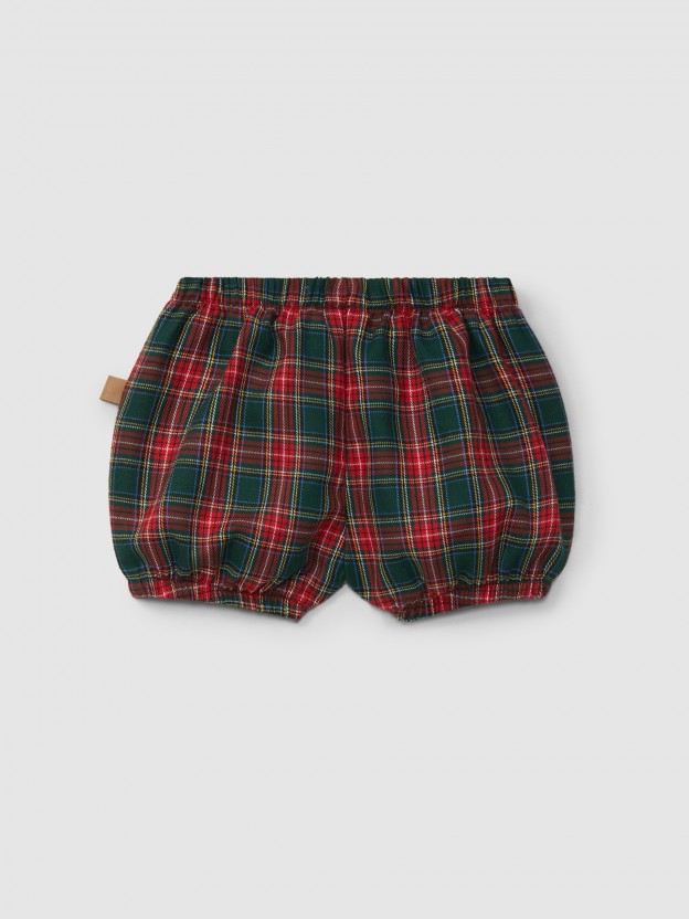 Calções pull-up em tecido xadrez. Elasticidade na cintura e pernas para maior conforto.