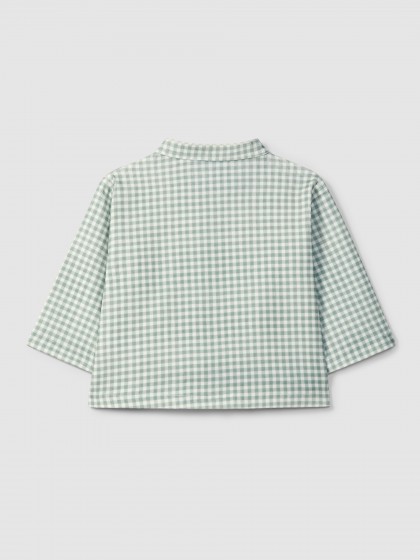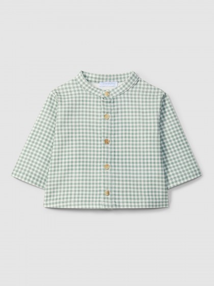 Camisa gola mao em bombazine 100% algodão com estampado xadrez vichy. Aperta com botões Laranjinha na frente.