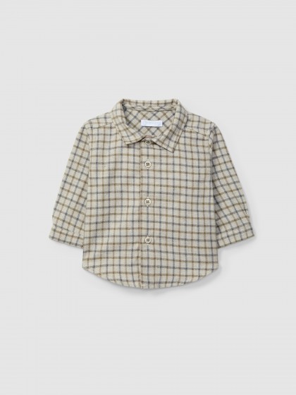 Camisa em tecido 100% algodão orgânico com estampado xadrez. Aperta com botões na frente e nos punhos.