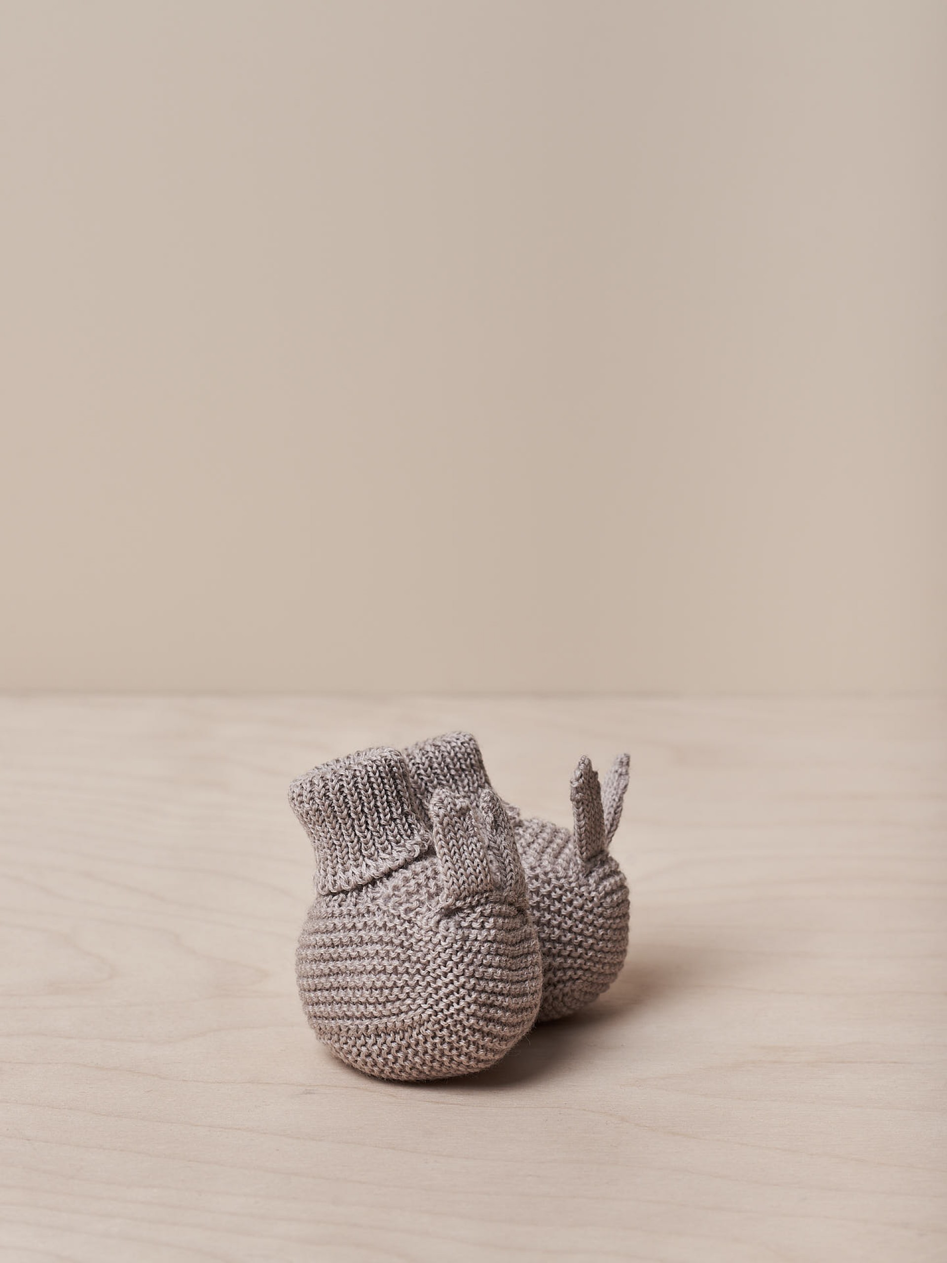 Carapins com orelhinhas DEAR BUNNY IN THE SNOW suavemente tricotados em lã merino extra fina, ideais para bebés. Produzida com a tecnologia Wholegarment, esta peça é completa e sem costuras, para maior conforto do seu bebé.