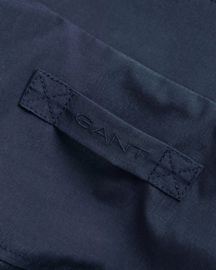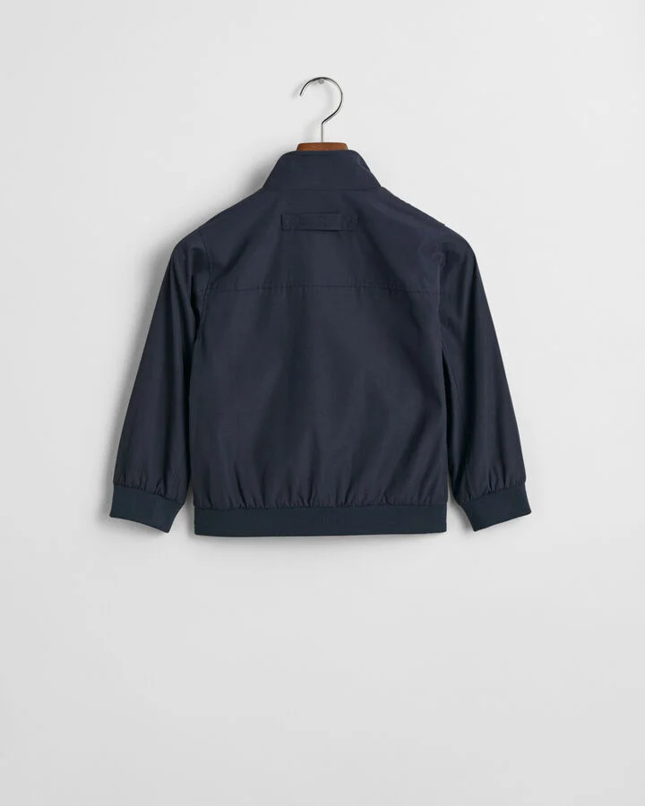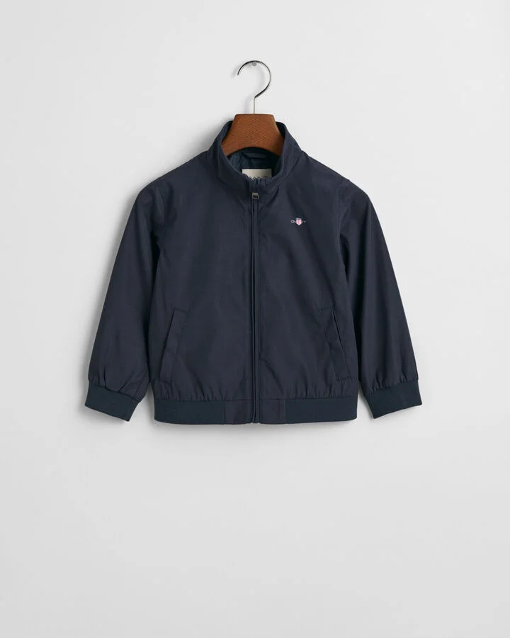 Inspirado nas silhuetas Harrington clássicas, este casaco foi criado numa versão mais pequena para criança. Com um corte normal unissexo, é feito numa mistura de algodão e material sintético reciclado suave. Apresenta uma gola estilo mao com proteção para o fecho de correr, dois bolsos embutidos à frente com botões de pressão e bainha canelada para conforto adicional. O casaco conta ainda com a nossa característica presilha na parte de trás com o logótipo GANT bordado.