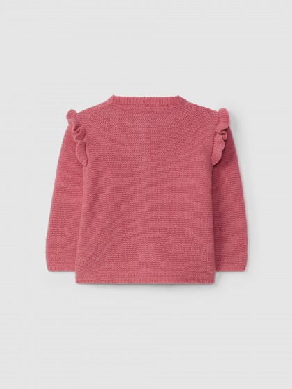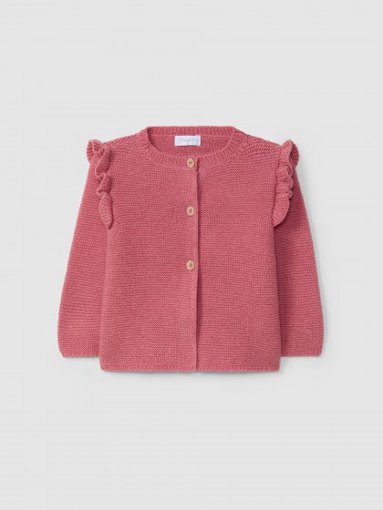 Casaco tricotado com um toque de caxemira e detalhe de folho. Aperta com botões Laranjinha na frente.