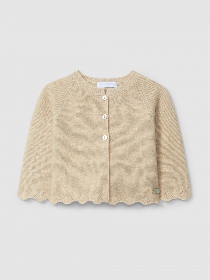 Casaco tricotado com um toque de caxemira. Detalhe trabalhado nos punhos e no fundo.