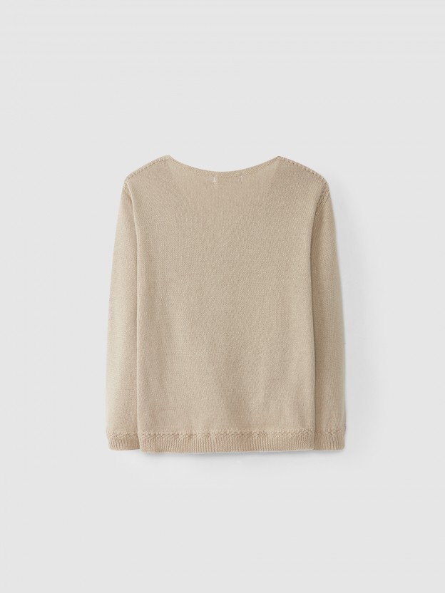 Casaco tricotado decote em bico