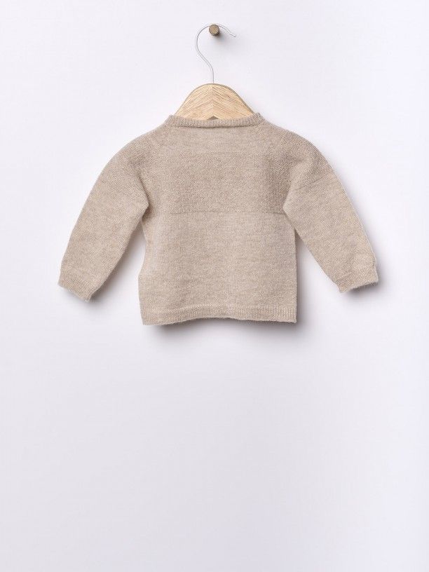 Casaco suavemente tricotado numa mistura de lã merino e caxemira, ideal para bebés. O casaco LITTLE LOVE aperta na frente com botões madrepérola. Produzida com a tecnologia Wholegarment, esta peça é completa e sem costuras, para maior conforto do seu bebé.