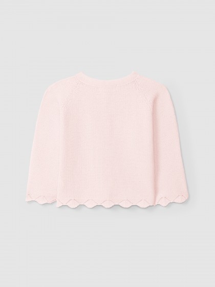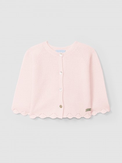 Casaco tricotado 100% algodão em ponto de arroz. Aperta com botões madrepérola Laranjinha na frente.