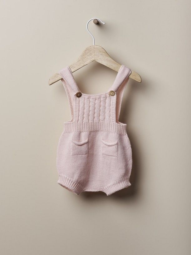 Fofo com alças tricotado em malha suave de lã, ideal para bebés. O fofo com alças THIS IS WINTER LOVE aperta na frente com botões de madeira. Produzida com a tecnologia Wholegarment, esta peça é completa e sem costuras, para maior conforto do seu bebé.