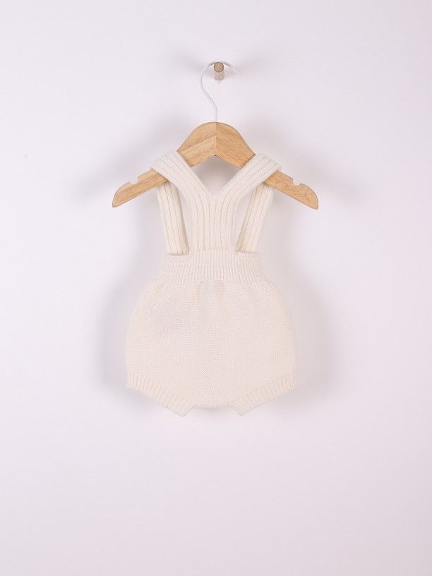 Fofo de alças tricotado em malha suave de lã merino extrafina, ideal para bebés. O fofo de alças SNOWFLAKE aperta nas alças com botões de côco. Produzida com a tecnologia Wholegarment, esta peça é completa e sem costuras, para maior conforto do seu bebé.