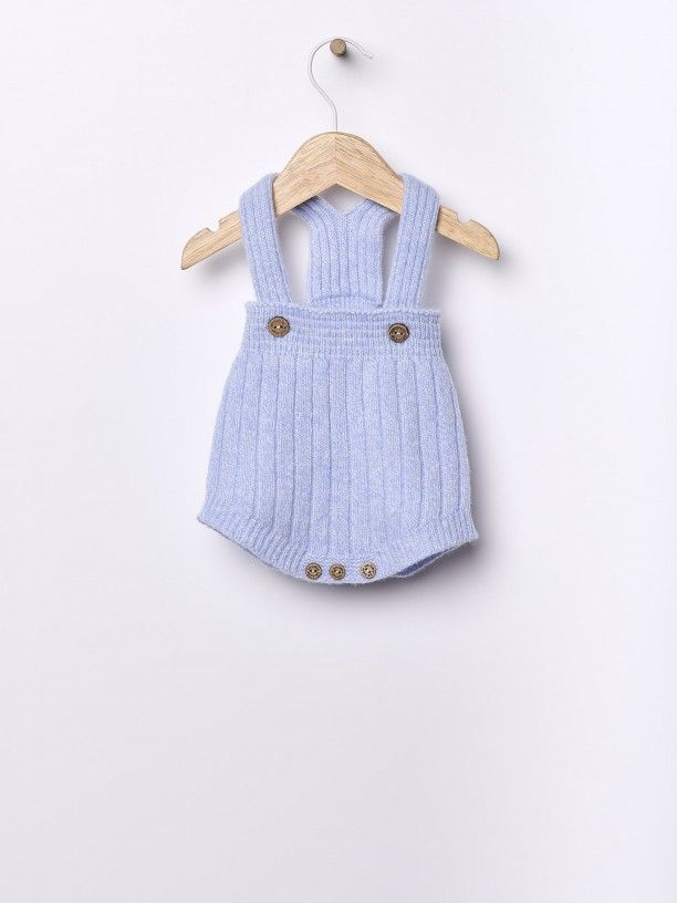 Fofo de alças tricotado em malha suave de lã merino extrafina, ideal para bebés. O fofo de alças BUNNY AND FRIENDS aperta nas alças e entre as pernas com botões de côco. Produzida com a tecnologia Wholegarment, esta peça é completa e sem costuras, para maior conforto do seu bebé.