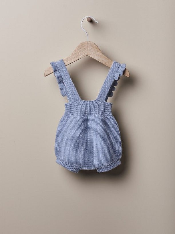 Fofo de alças suavemente tricotado em lã merino extra fina, ideal para bebés. O fofo de alças DEAR BUNNY IN THE SNOW aperta nas alças com botões de côco. Produzida com a tecnologia Wholegarment, esta peça é completa e sem costuras, para maior conforto do seu bebé.