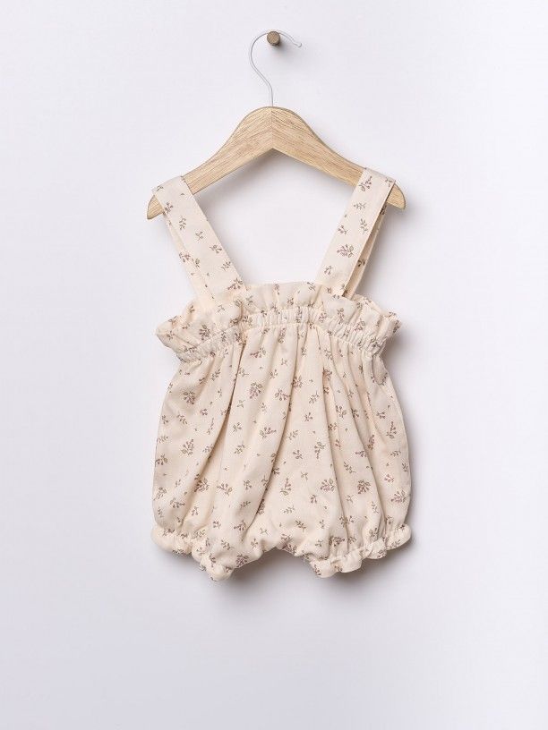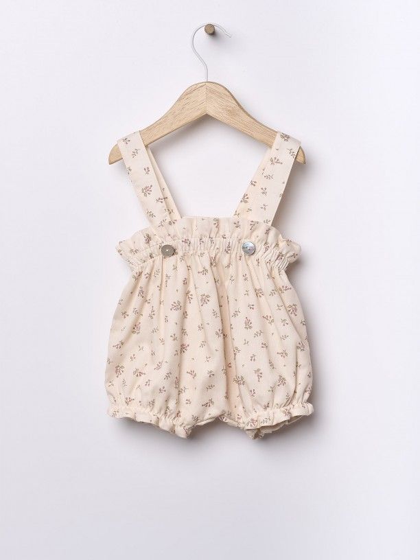 Fofo de alças LITTLE LOVE ideal para bebés meninos e meninas, até aos 24 meses. O fofo de alças, produzido em tecido suave de algodão com um doce padrão florido sobre fundo rosa, tem uma cintura ajustável que permite obter o máximo conforto do bebé. Aperta nas alças com botões madrepérola.