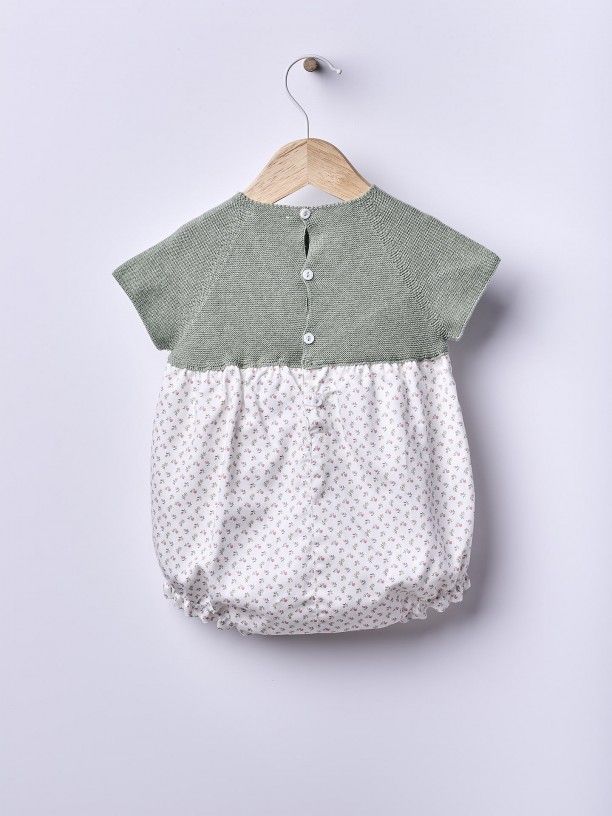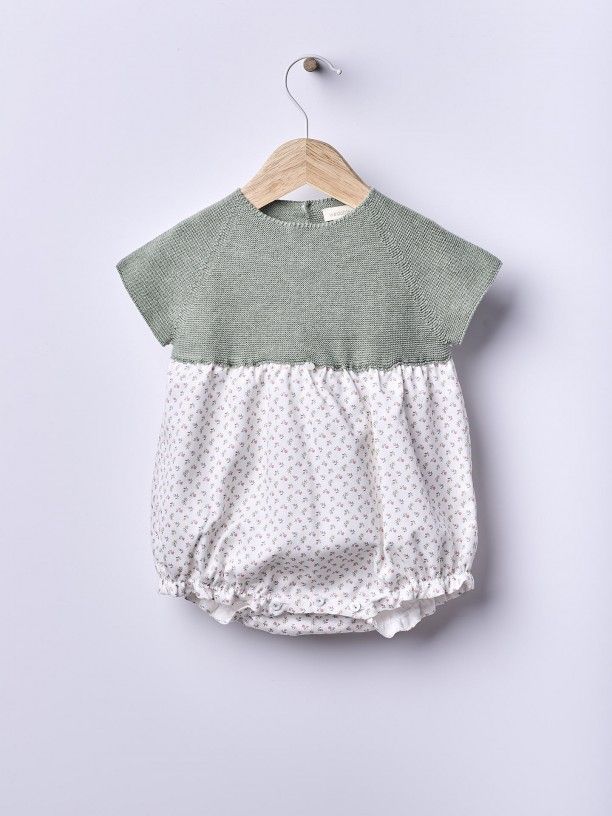 Fofo de manga curta ideal para bebés. A parte do peito do fofo A GRACEFUL SUMMER é suavemente tricotada em malha fina de algodão com um detalhe da marca decorativo na frente. A parte inferior é produzida em tecido de algodão suave com padrão floral botânico, forrada em algodão leve para maior conforto. Aperta nas costas e entre as pernas com botões madrepérola. Produzido em Wholegarment, uma peça completa sem costuras, para maior conforto do seu bebé.
