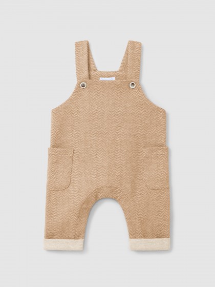 Jardineiras em malha de espinha suave e maleável com bolsos laterais funcionais. Aperta com botões Laranjinha nas alças em duas posições.