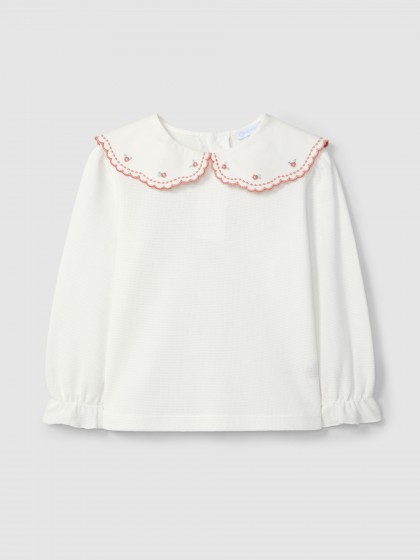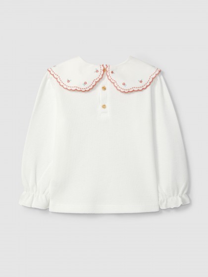 Longsleeve em malha waffle 100% algodão cardado. Gola com bordado em cor contraste. Aperta com botões Laranjinha nas costas.