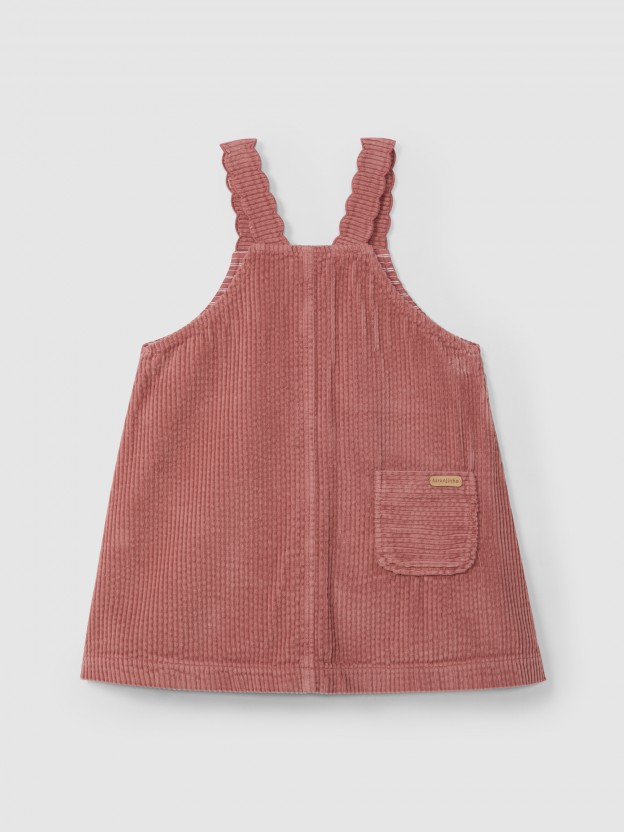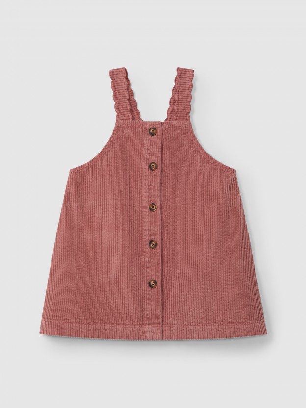 Saia de peito em bombazine muito maleável e confortável 100% algodão. Alças com detalhe decorativo. Aperta com botões Laranjinha na frente a todo o comprimento.