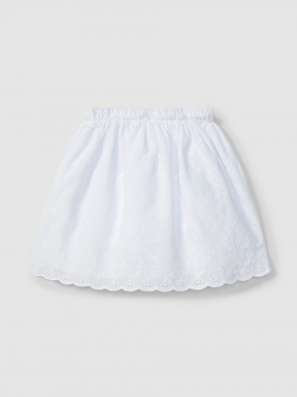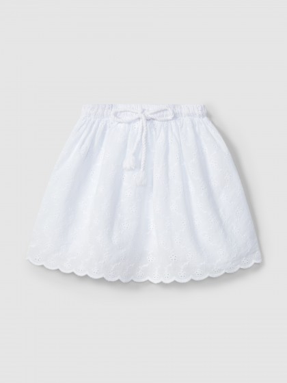 Saia em tecido 100% algodão em bordado inglês. Cordão funcional na cintura para uma melhor adaptação.