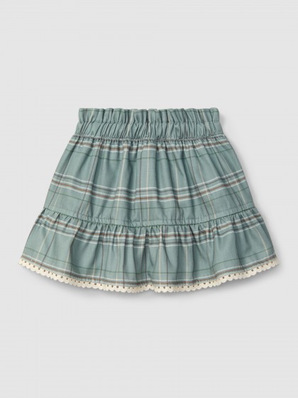 Saia pull-up em tecido 100% algodão estampado com detalhe de renda no fundo.