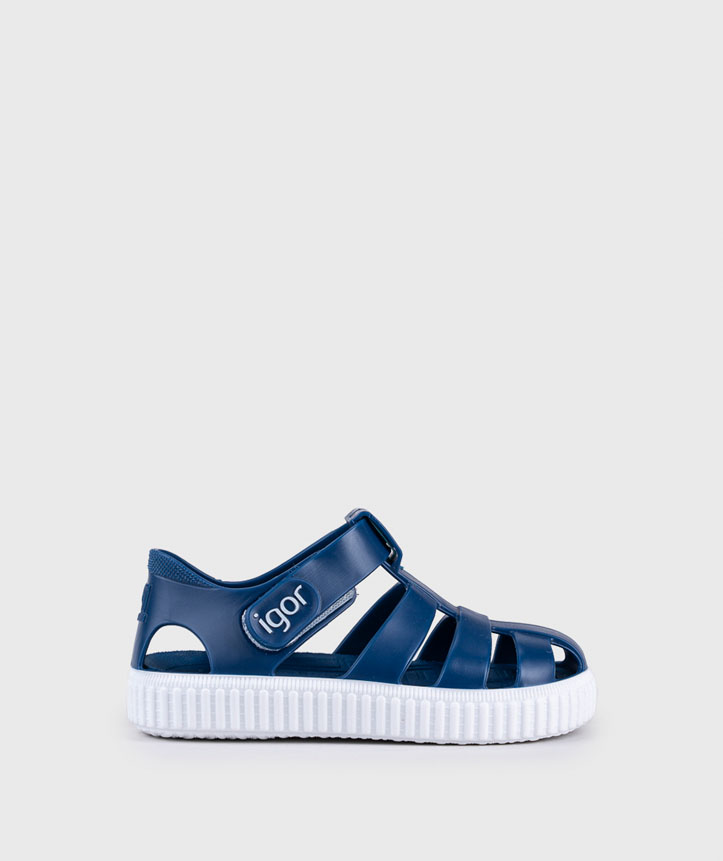Sandálias desportivas, acabamento em mate, fecho aderente, palmilha removível.