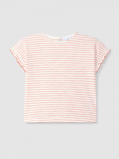 T-shirt riscas com mangas de folho