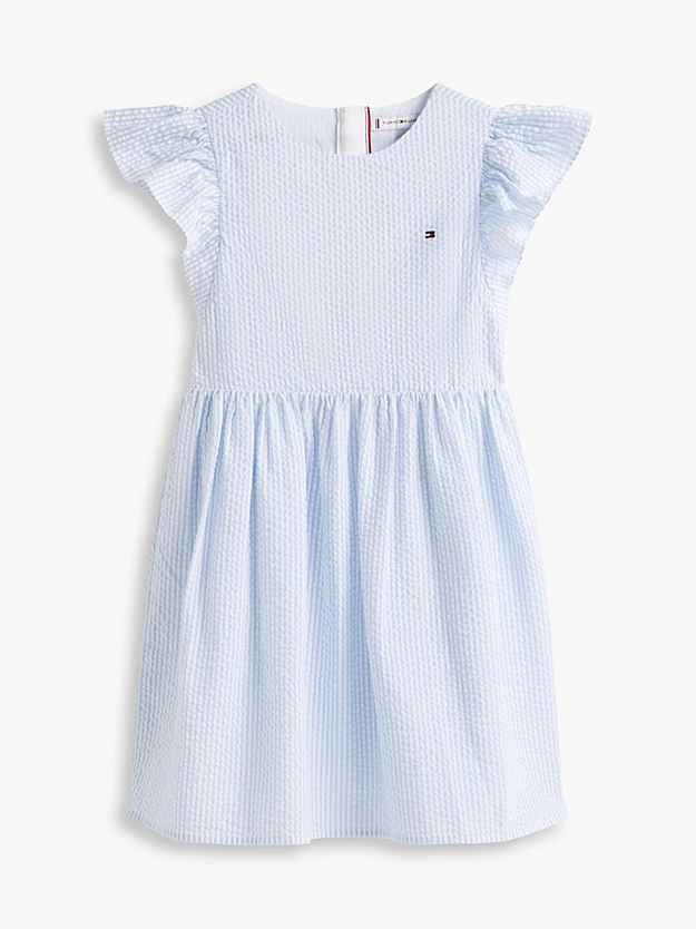 Vestido de manga curta confeccionado em algodão seersucker leve e puro.